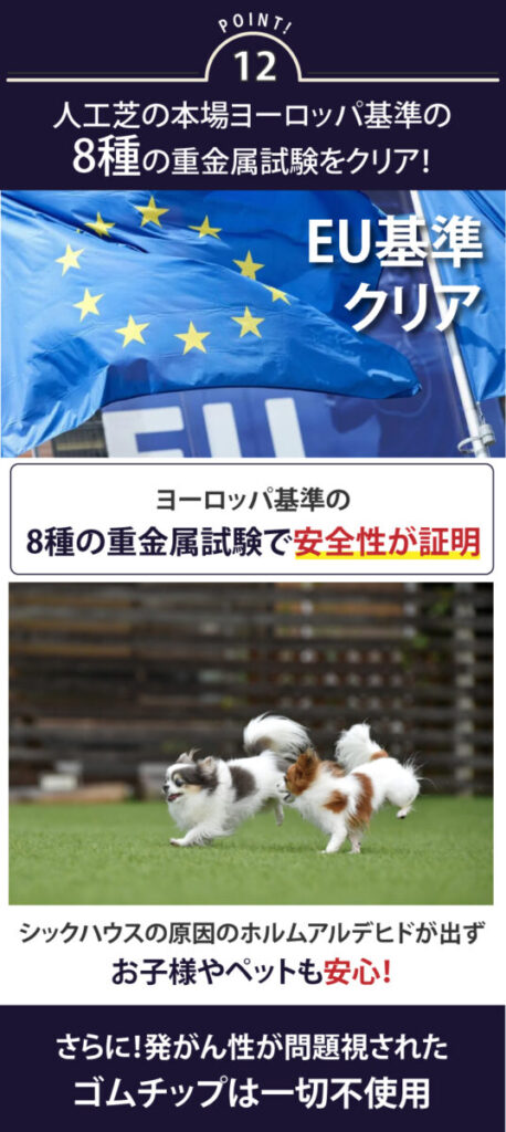 オリジナル人工芝「エターナルターフ」は、末永く安全に使用することを考えて作られております。