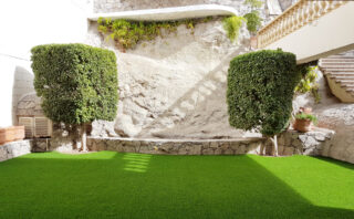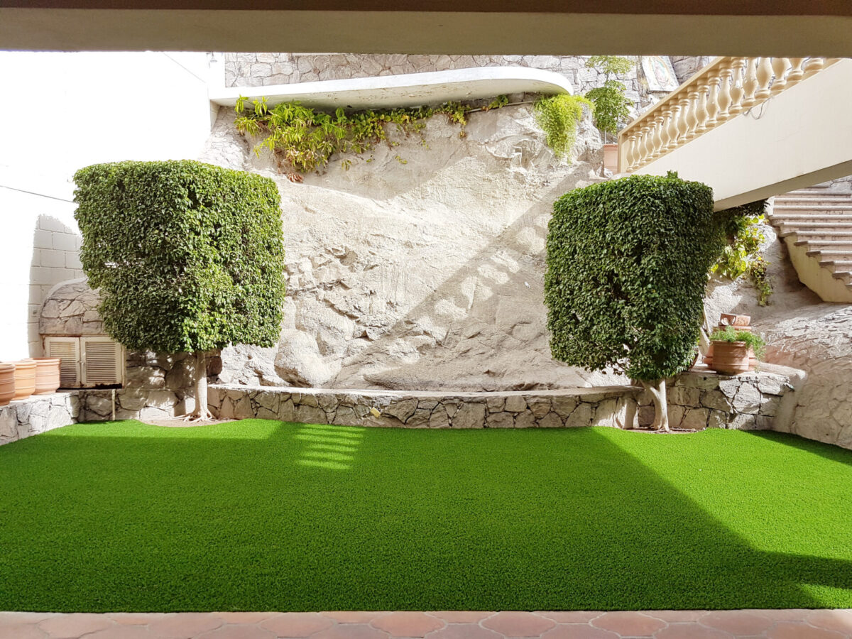 人工芝は裏面から簡単に加工がしやすいので、素材に合わせてくりぬくことで自然な仕上がりになります。
