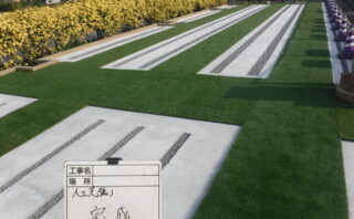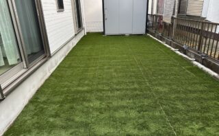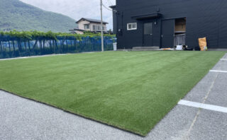 お届けした人工芝が、現場でしっかり活かされていて、写真からも職人さんの丁寧な施工が伝わってきます。
