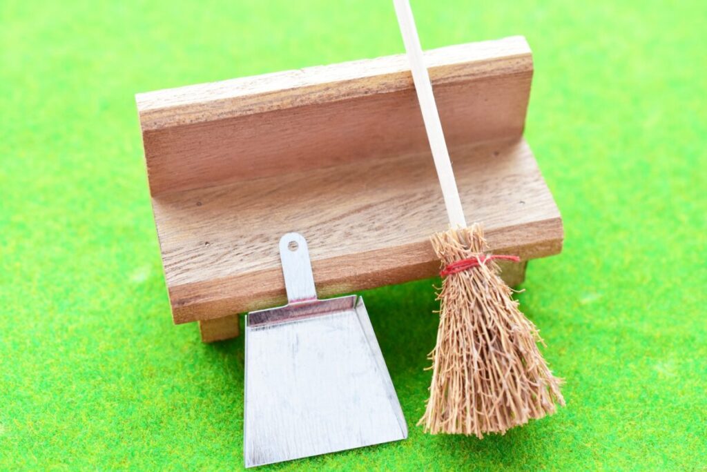 清掃と言っても、人工芝の上にある落ち葉やゴミなどをほうきで掃いたり、汚れを水洗いしたりするだけで大丈夫なので気軽に行いましょう。