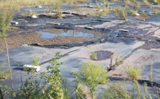 かたくなってしまった雪は、無理に取り除こうとすると、芝が傷む原因になります。