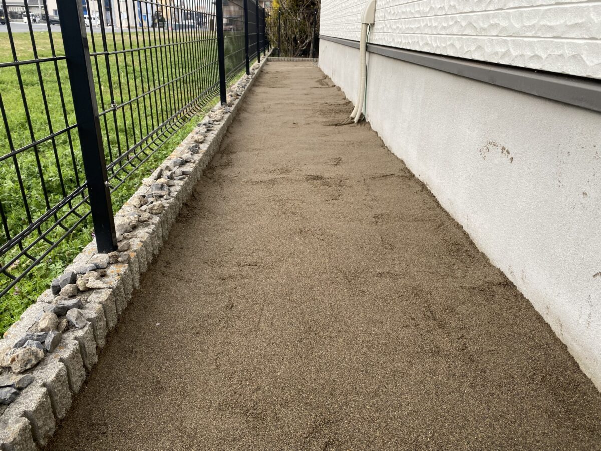 庭が全面埋まるように、きちんと敷いて雑草の生えない庭を目指しましょう。