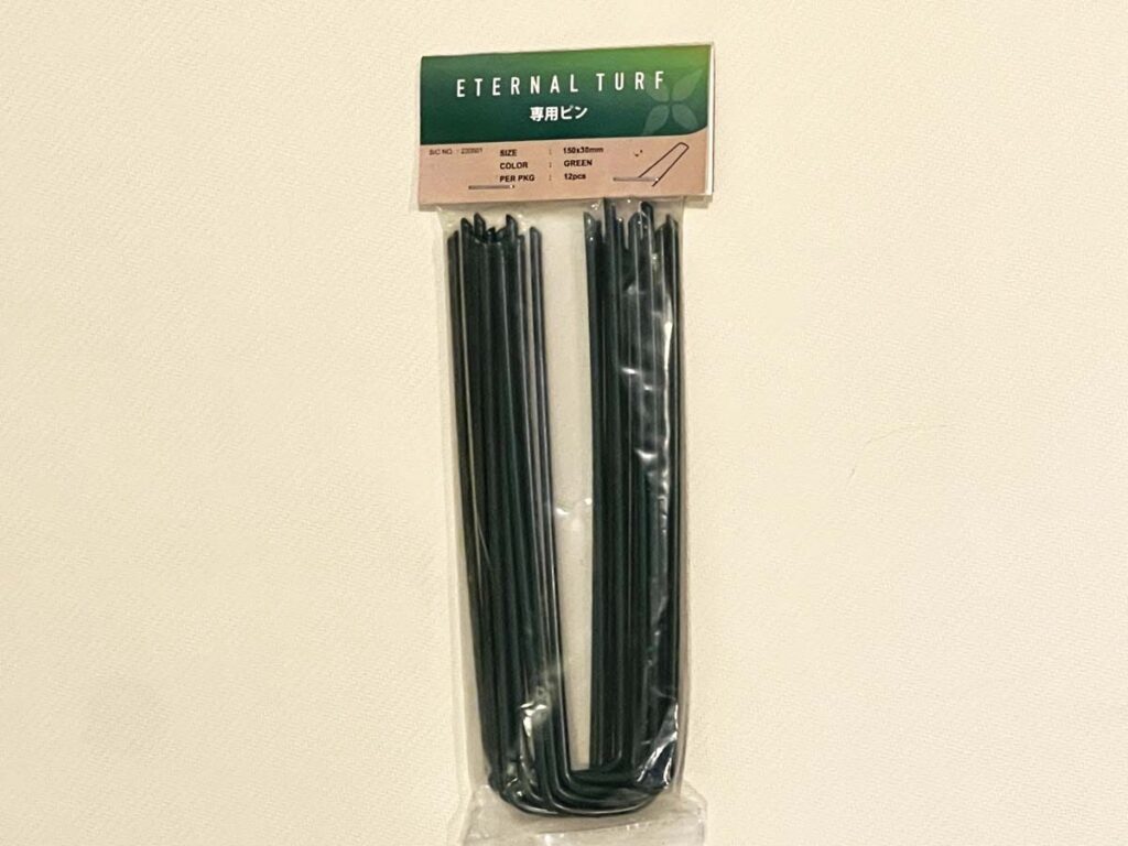 人工芝にピンを使わないと、芝が剥がれたり、めくれやすくなります。
