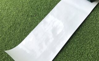 ピンだけでなく防草シートと人工芝を接着剤(ディノグリップなど)で固定することで更に風に強い施工になります。