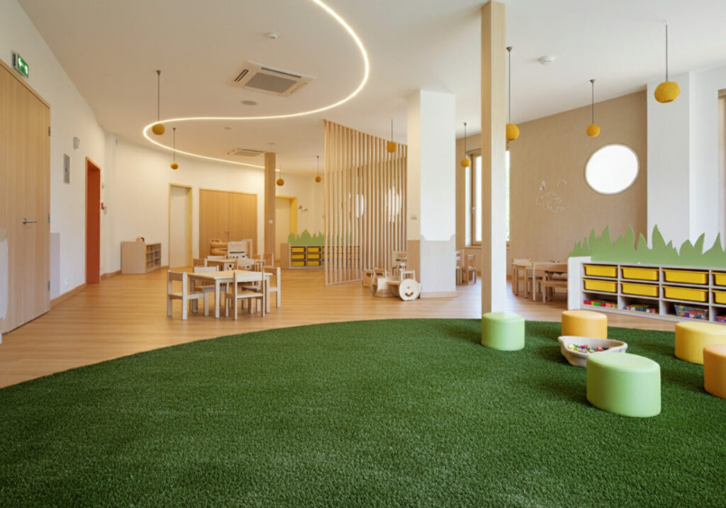 リアルな人工芝は自然な風合いが魅力で、園児たちが元気に遊ぶ姿を引き立てるだけでなく、保護者からも高い評価を得ることができます。